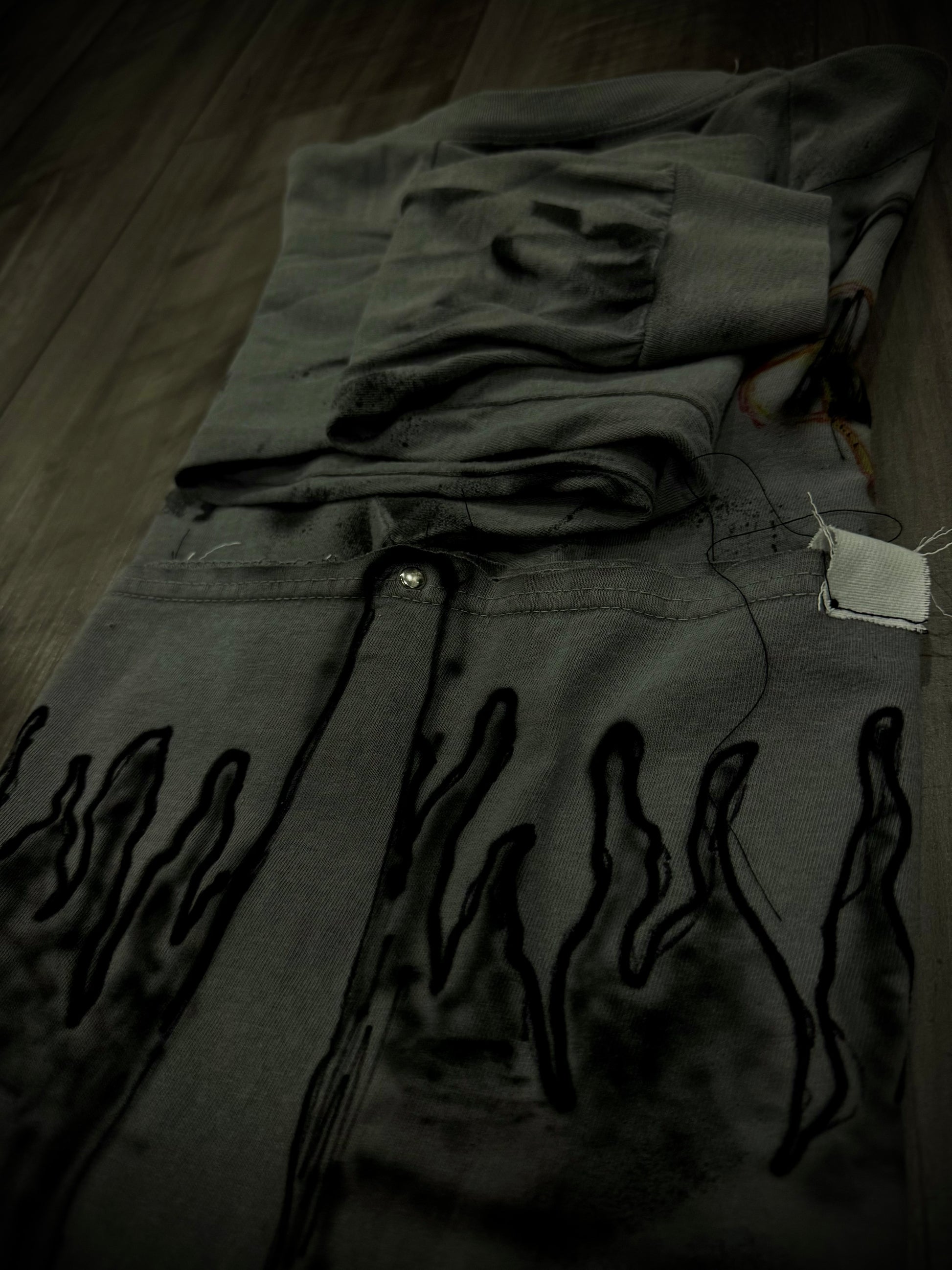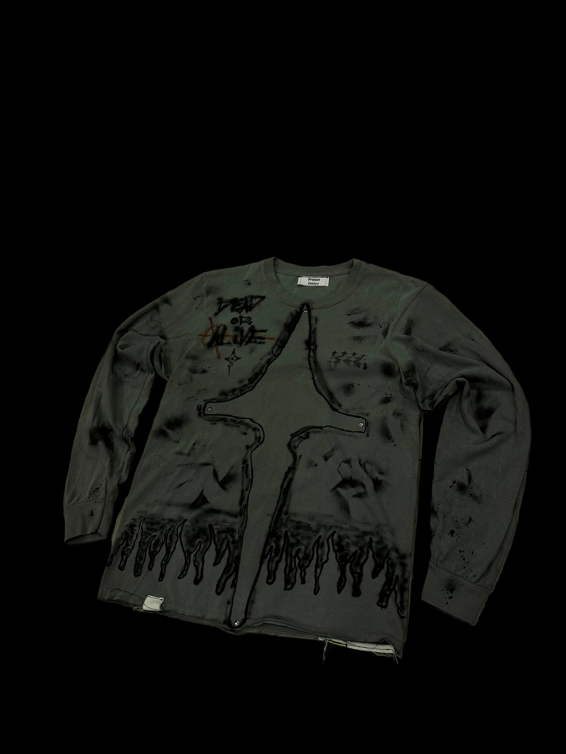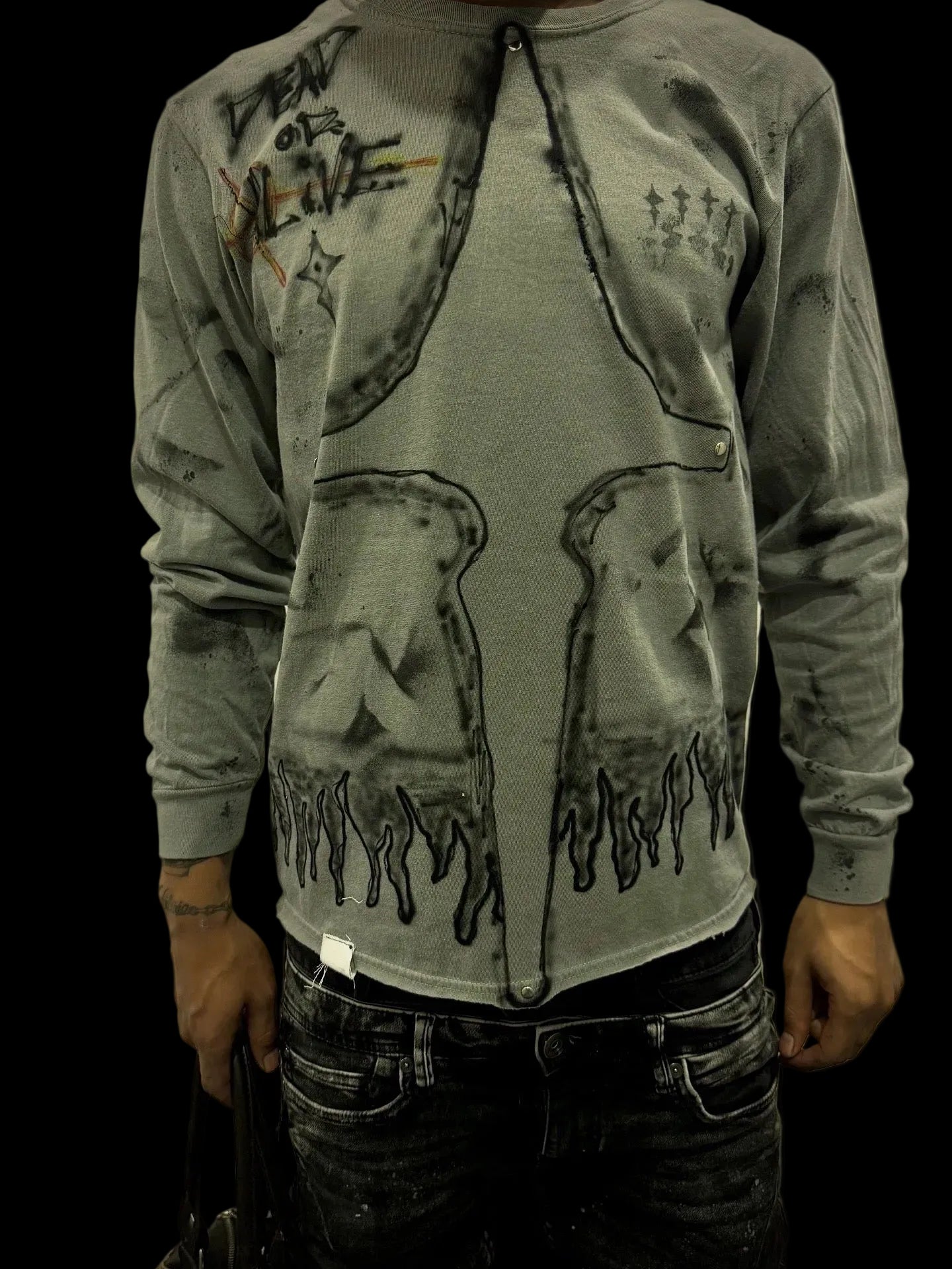 Transform your wardrobe with these hand-crafted, fashion-forward pieces. Crafted with care and inspired by the latest street wear trends, each one is uniquely designed with air brush+ fabric paint. Stand out from the crowd with these one-of-a-kind pieces, featuring 4 double sided rivets on each end of the cross for a meaningful touch. Perfect for those who appreciate attention to detail and quality design.