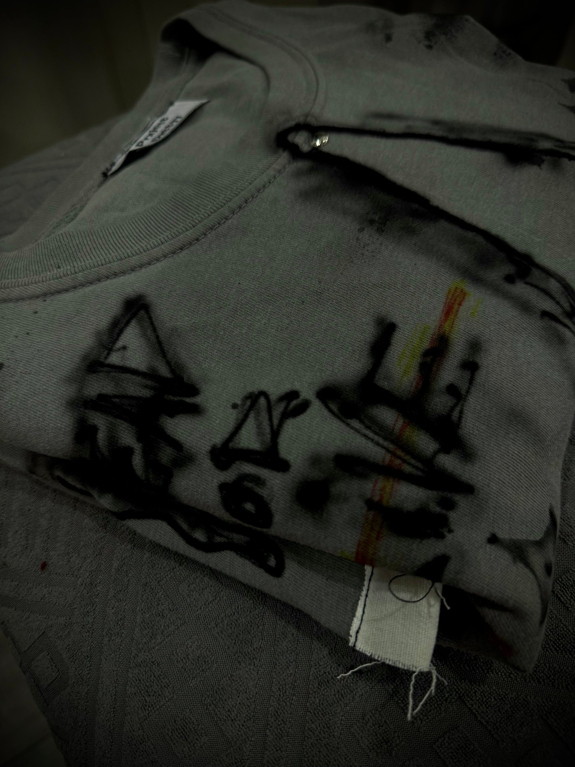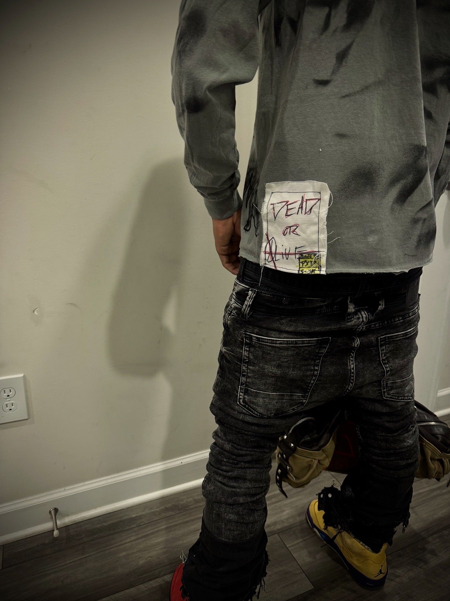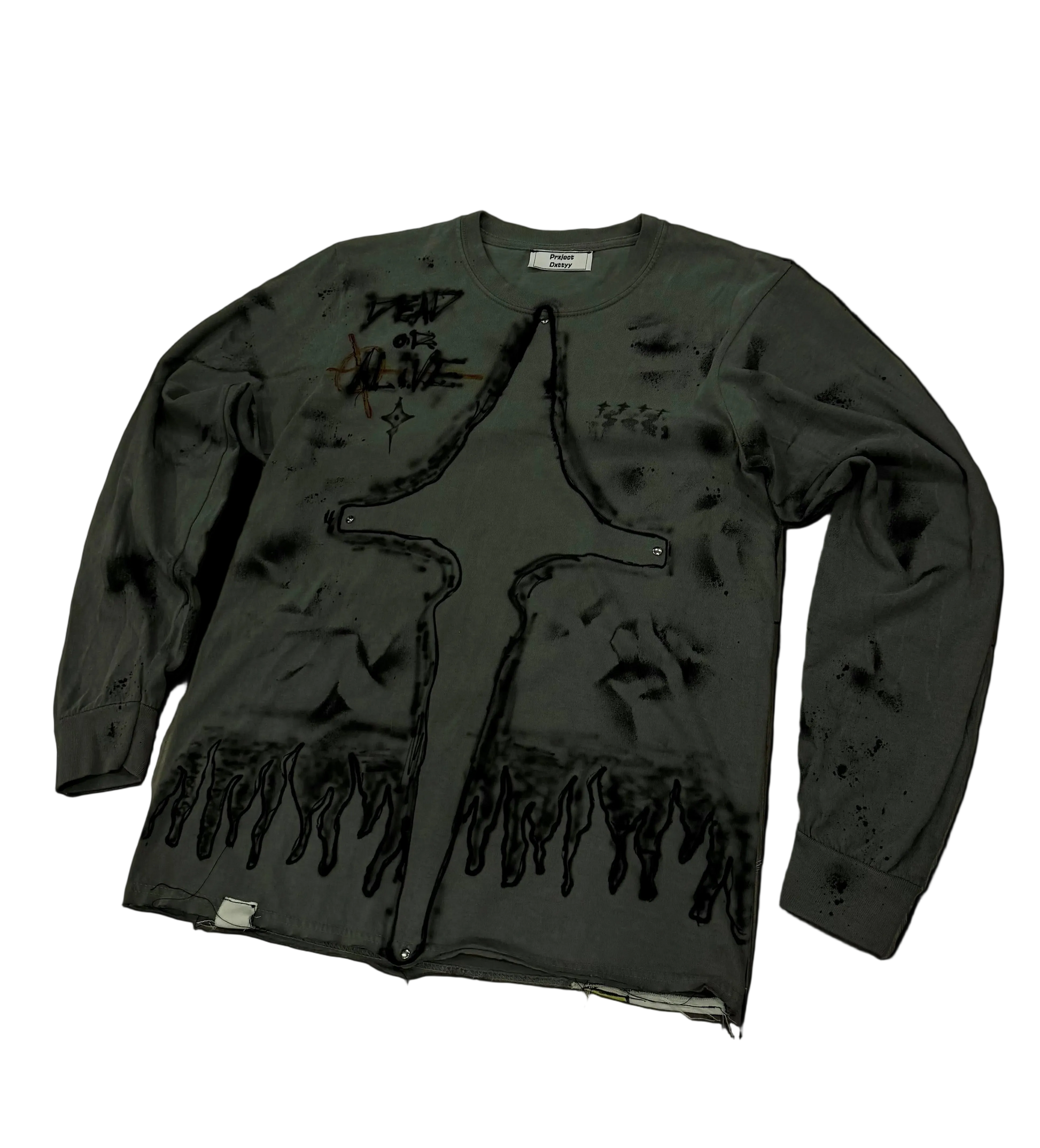 Transform your wardrobe with these hand-crafted, fashion-forward pieces. Crafted with care and inspired by the latest street wear trends, each one is uniquely designed with air brush+ fabric paint. Stand out from the crowd with these one-of-a-kind pieces, featuring 4 double sided rivets on each end of the cross for a meaningful touch. Perfect for those who appreciate attention to detail and quality design.